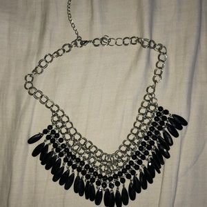 This is a dramatic bold necklace. Beautiful and detailed with black colored design.