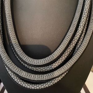 Faux multi coil necklace. Very light weight. Silver clasp in the back. Very fun add on piece.