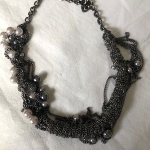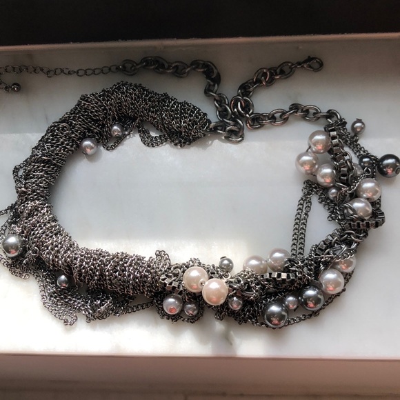 Fancy necklace from Bloomingdale. Modern design with different chains and white and dark gray pearls. Very unique!