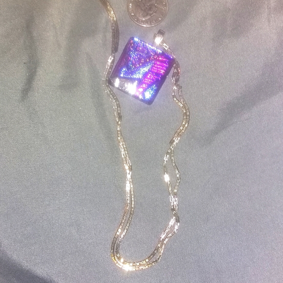 Handmade pendant, beutiful bright purples, pinks, silvers and blues.