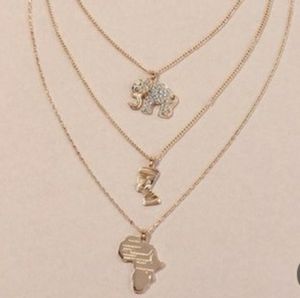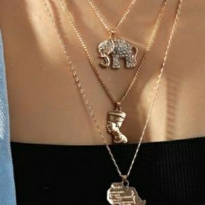 New Fashion Multi-layer Simple Alloy Elephant Map Portrait Necklace