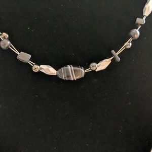 Flicker 16-19 inch silver, black, white beaded wire necklace