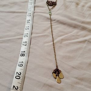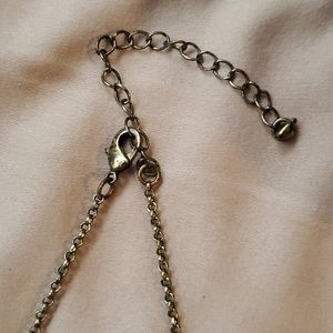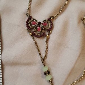Pinkish/purple charm with seafoam color beads on a gold chain. I love this necklace, just don't wear it much now days.