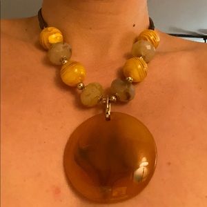Dramatic large pendant and beaded necklace. Adjustable. Excellent condition, barely worn