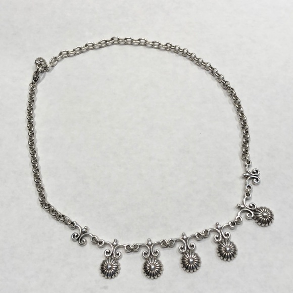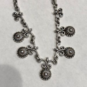 Silver necklace with claw type clasp.