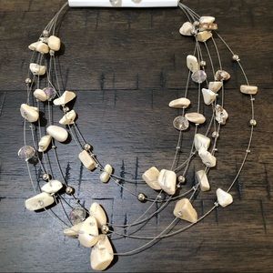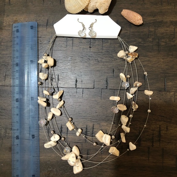 Beige Stone and transparent acrylic necklace.