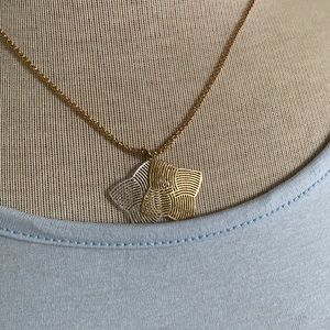 Gold colored chain with adjustable length. Silver and gold pendants are not attached to each other so allow a bit of movement. Light, great for spring/summer.