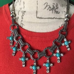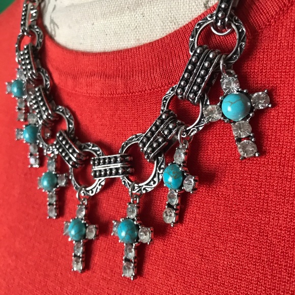 Beautiful siver tone necklace with faux crystal in heart and turquoise beaded , 18” long + extension new no tags.