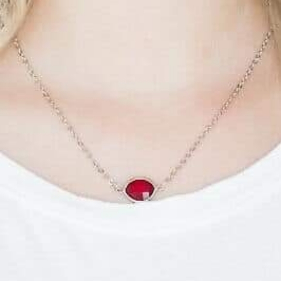 Short Red ruby Silver chain 2" extender on a lobster claw Also have in emerald green