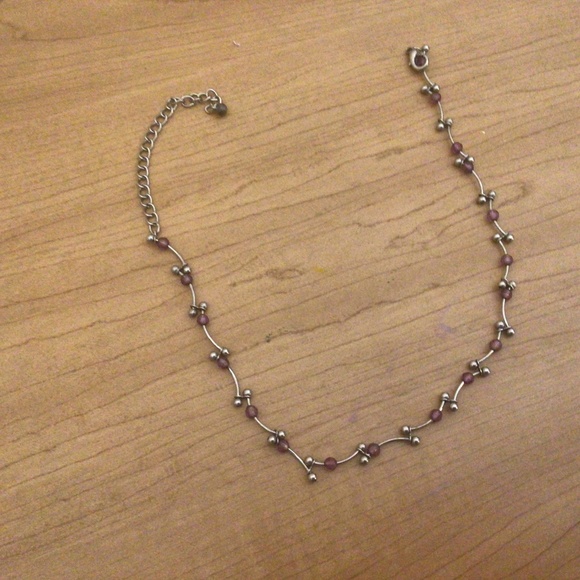 Silver necklace with purple beads