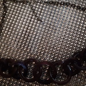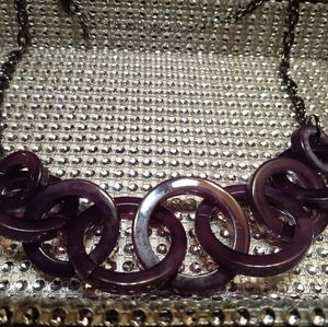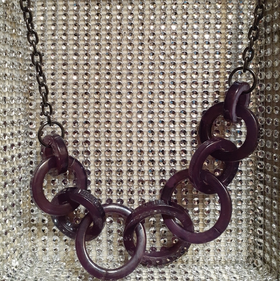 Brand new. Never worn. Purple hard plastic hoops intertwined with an Alloy chain.