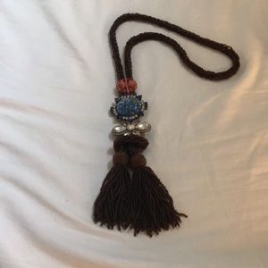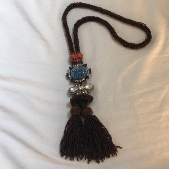 Super unique and one of a kind bead and jeweled long necklace. Approximately 23” total length. Purchased at a boutique near Michigan Ave in Chicago.