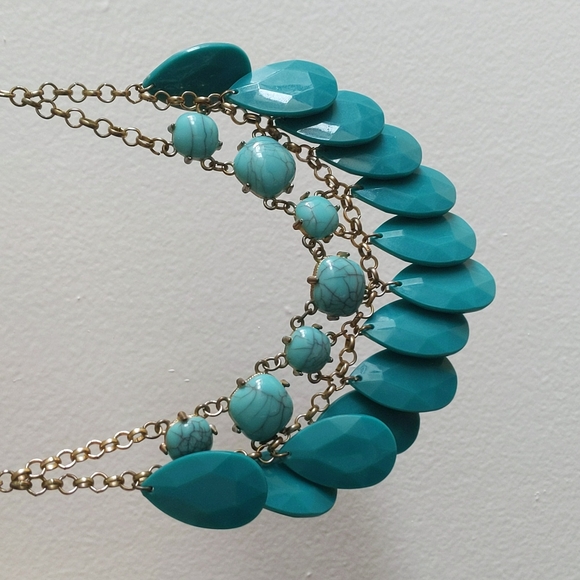 Teal/green chunky necklace that's been loved but has plenty of life left in it! A great statement piece!