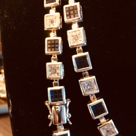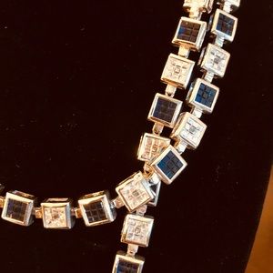 20 inch rhinestone and imitation blue sapphire necklace. Looks authentic. Rhodium plated very pretty costume piece