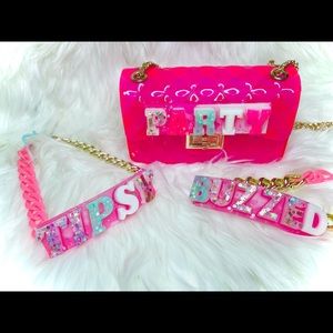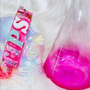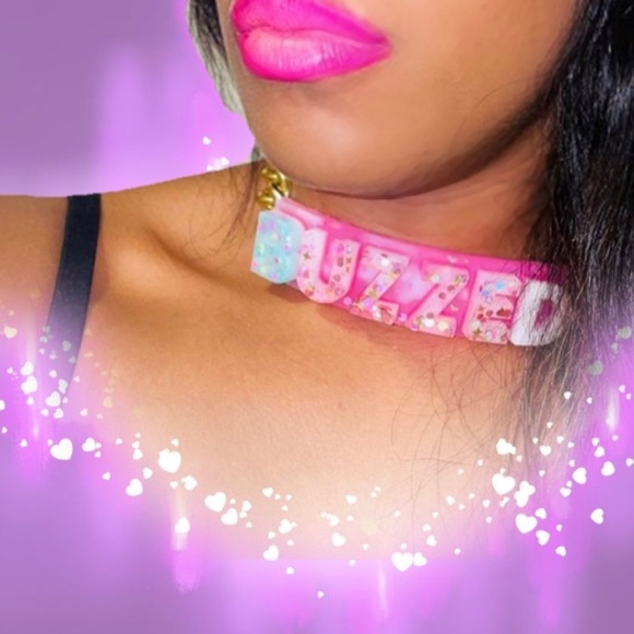 “Hangovers are temporary, but drunk stories last forever”. Highlight your day or night with this gorgeous handmade letter decor piece. This necklace features two colors, pink and gold for the chain, as well as a blue heart closure. Our center piece is made of acrylic with thick rich letters that can be seen near or far, this chocker is definitely a conversational piece, and a all out eye catcher, so party on.
