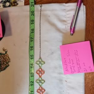 Orange green silver seed beads with silver chain and lobster claw clasp