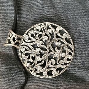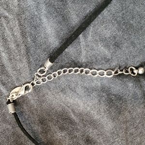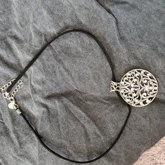 Circle design in silver with rhinestones. Adjustable clasp so it can be worn as a choker or looser.