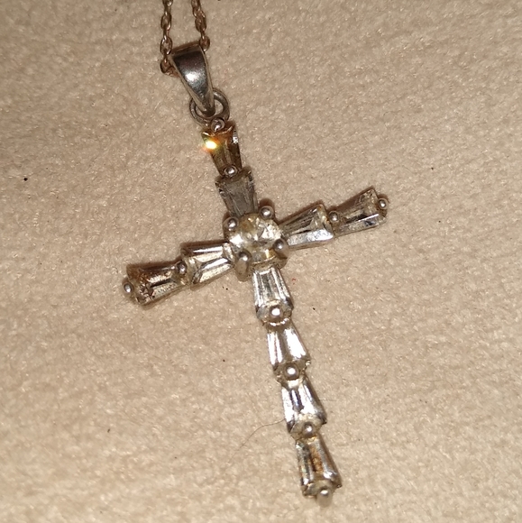 cross necklace with baguette setting stones 925