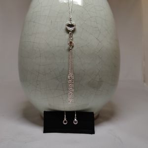 2pc necklace and earrings silver and clear quartz custom jewelry.