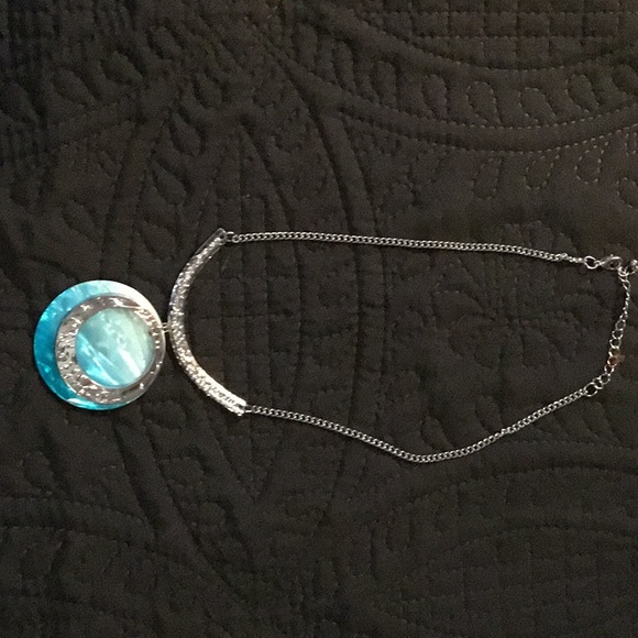 Turquoise and silver colored necklace Stunning design Looks beautiful in the light