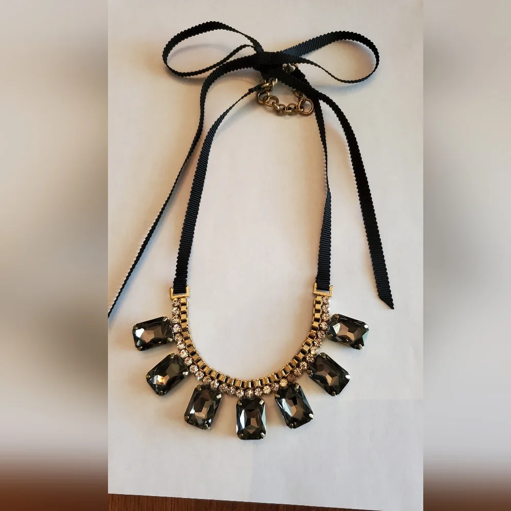 Banana Republic black gem & gold necklace with black ribbon & clasp closing. So beautiful. It will be the perfect accessory for all kinds of looks. Never worn!