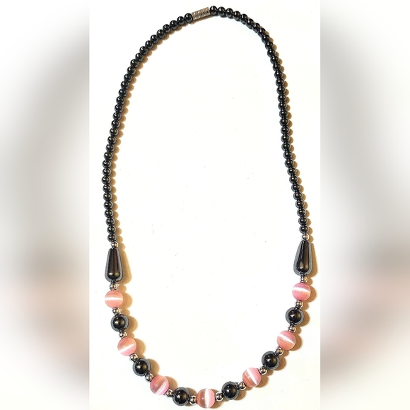 Hematite and rose quartz beautiful beaded necklace. These beads are supposed to be good for you too!