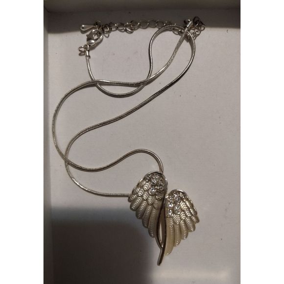 Silver necklace with wings. Don't know much about it.