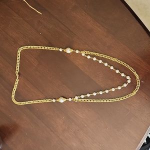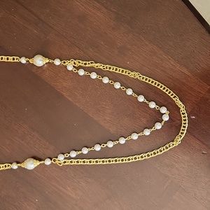 Vintage double layered necklace, on strand white bead chain, and the other strand is a gold strand. In good condition, gently used, from a smoke-free and pet free home.