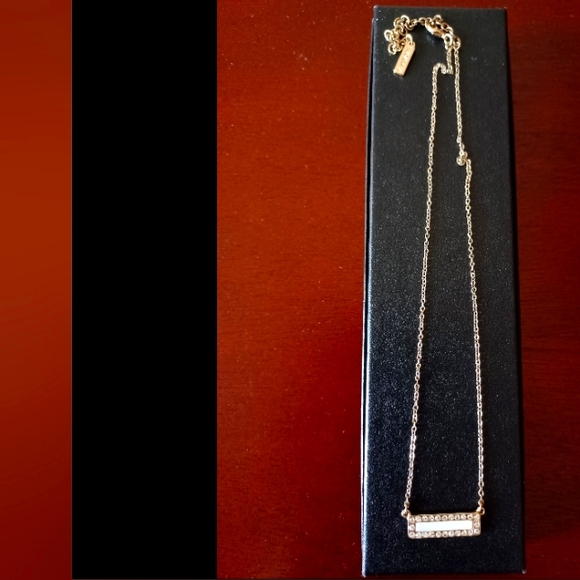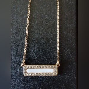 Fashion necklace with a rectangular shaped pendant.
