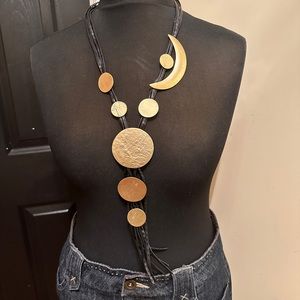 Turn any boring outfit into one that will turn heads with this “statement piece” necklace. Necklace is made out of genuine leather tassels