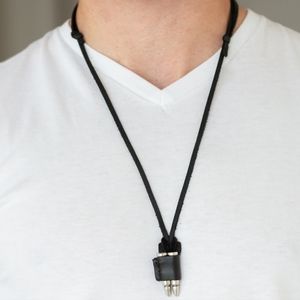 NWT. Unisex black leather adjustable bullet necklace.