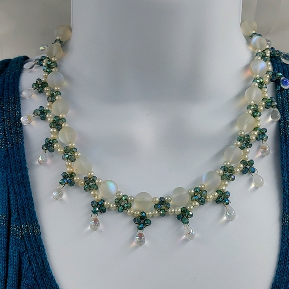 moonstone green crystals handmade necklace single item