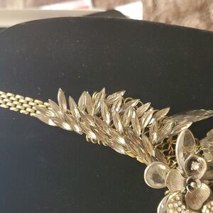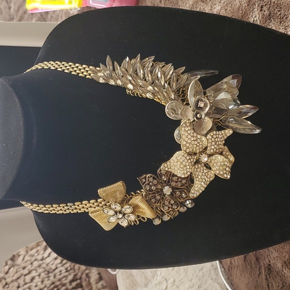 Black and white house. 21 inches longest length, gold, rhinestones and flowers. Beautiful piece. Never worn, new with tags.