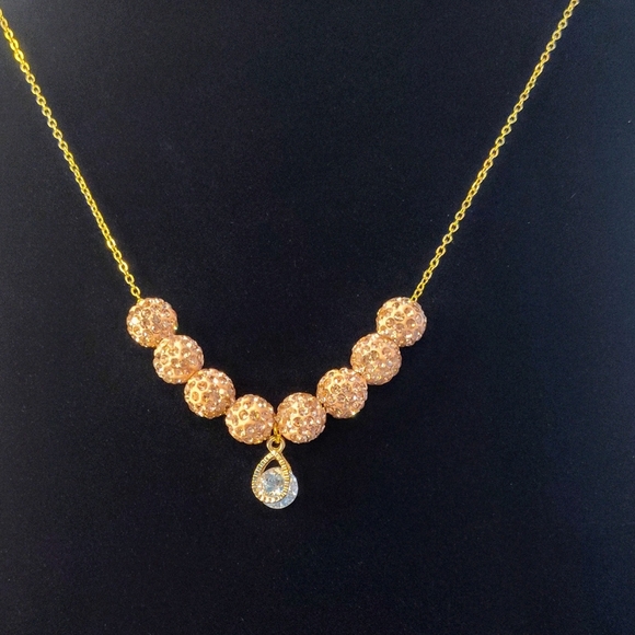 Beautiful Necklace, Clay and Champagne Color Crystal Beads,with a Glass and Gold tone trim Stone Embellishment for Extra Flare and Style on a gold Plated Chain. 22" L and light in weight.