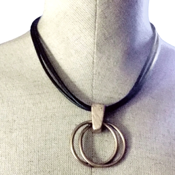 Black cord necklace with gold toned pendant
