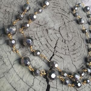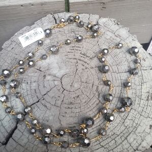Gold colored chain necklace with light silver gray colored beads, looks like little disco balls. NWT