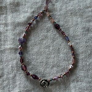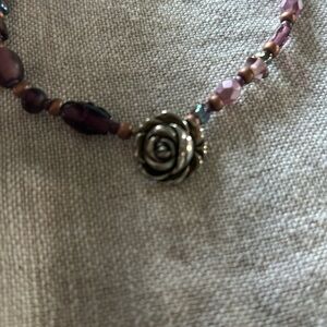 No clasp necklace beads of purple color small rose flower at the centerer-