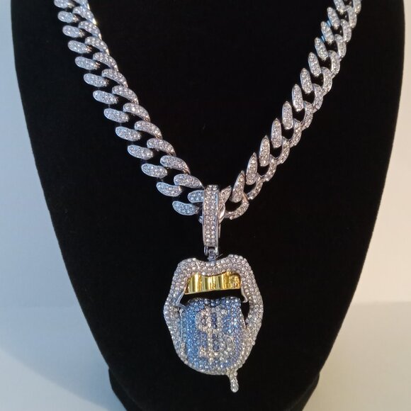 Men or Women's Blue Tongue Pendant, Classic Dollar Sign with a Cuban Link Chain. 18 inch