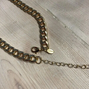 The thick chain trans gets elevated with these pearl tassels. Gold toned. Adjustable last 3.5”. Lobster claw closure. Wore once for these photos and video. 22” long. Tassels at 4” and 7” drops.