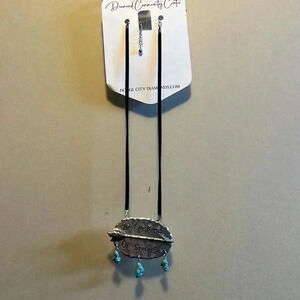 Diamond community center necklace, weather, chain with turquoise dangle pendant that says, be your kind of strong