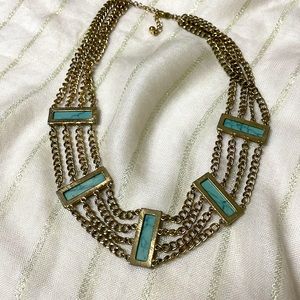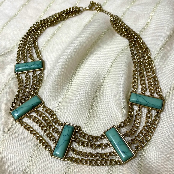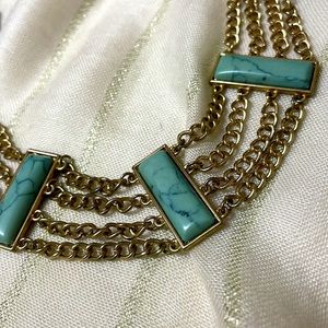 Beautiful Turquoise and Gold Necklace. Costume Jewelry. Excellent condition, hangs approximately 8.5” in length with adjustable clasp.