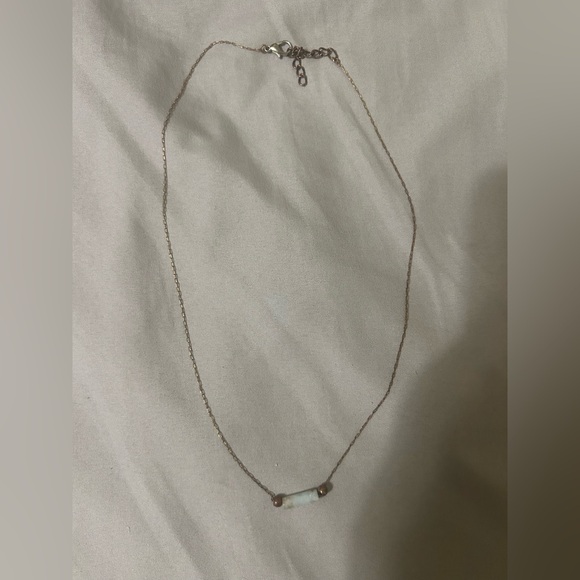 This elegant gold necklace features a subtle green accent, perfect for adding a touch of sophistication to any outfit. Ideal for both casual and formal occasions.