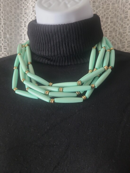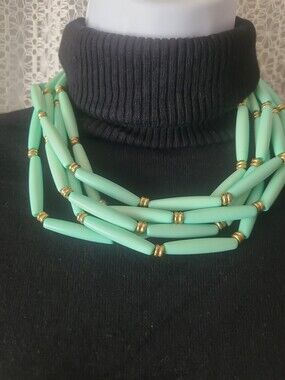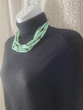 Necklace Chunky layered green oval barrels very nice with the black color don't sure about the brand chico's