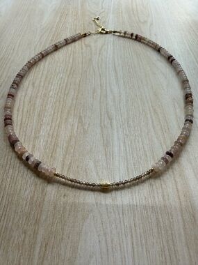 Handmade violet stone and smoky quartz beaded necklace — 16.5” + 2” Extender