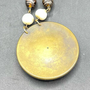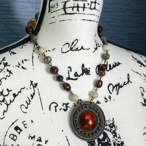 Necklace Amber Orange Circle Pendant Bead Gold Tone Necklace