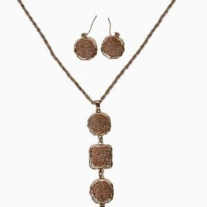 Necklace And Earrings Set Long Rose Gold Glitter Drop Pendant Tassel C 1946