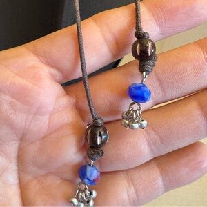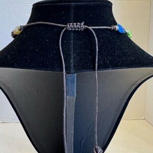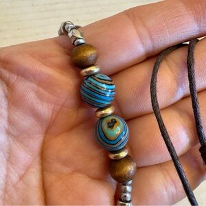 Beautiful orange dragon vein single bead along with multi color beads. This is a unique artsy piece that will add fun and color to your wardrobe. It is set on a brown string that can be adjusted for length from 22" to 36"