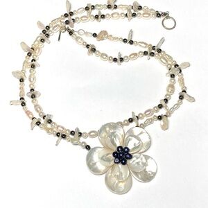 Necklace Artisan Flower 925 Clasp Pearls Mother of Pearl 18”