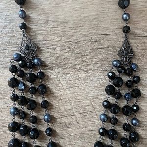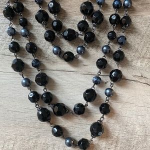 Presenting this women’s black & gray bead & gray faux pearl multi-strand statement necklace.