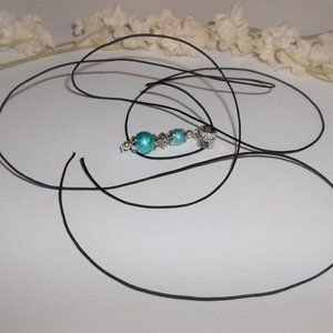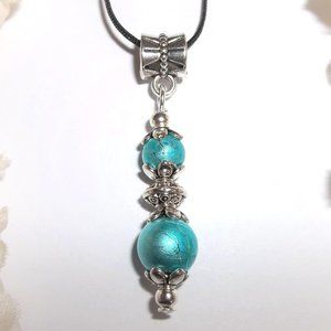 This pretty beaded necklace set is brand new NWT & handmade by me - wvluckygirl. Hand crafted with turquoise blue faux freshwater pearl glass beads that have gorgeous layers of drizzled paint to give them an eye-catching crackled or marbled texture. They have antiqued silver toned costume jewelry beads. The pendant and decorative bail measure 1 5/8 inches tall & 3/8 inch wide. Comes with a 36 inch black nylon rope cord string that you can tie to any length you want to wear it. Double it up around your neck and wear it as a short layered look beaded choker. Wear it long with other necklaces to get that trendy stacking look. You could even change up your look by adding it to a necklace you already own. Buy it now before someone else does!